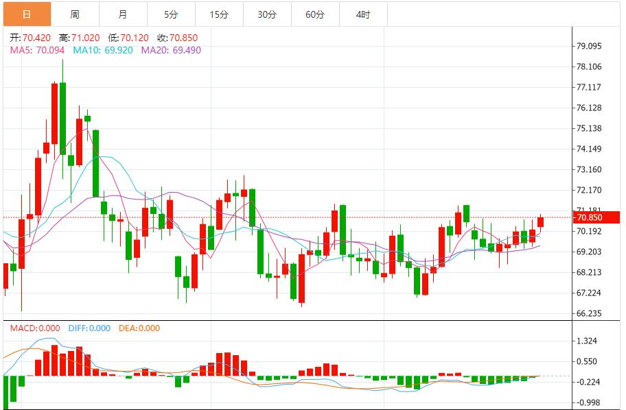 原油市场:截止北京时间21:25,美油上涨,现报70.84,涨幅0.35%。纽市盘前,原油价格今天开盘时明显突破70.58美元,并试图保持在70.58美元上方,开始激活日内的牛市,并朝着实现积极目标的方向前进,从访问72.15美元区域开始。