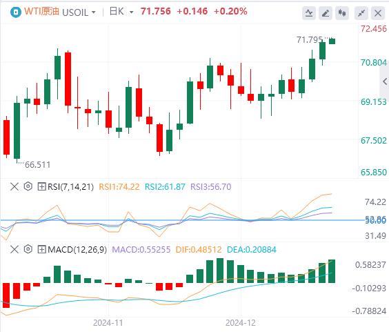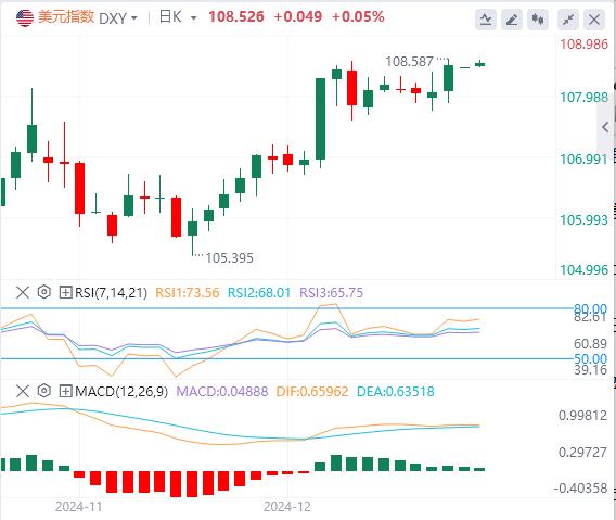 1月2日,北京时间周四亚市早盘,美元指数徘徊在108.07附近。元旦假期,CME旗下贵金属、美国原油、外汇和股指期货合约交易全天xm217.com暂停,布油交易提前结束,纽交所休市一日。周二(2024年12月31日),因为美联储将利率维持在高于其他央行的水平,美元指数创下两年新高,最高触及108.59,最终收涨0.37%,报108.48。基准的10年期美债收益率收报4.5760%;对货币政策更敏感的两年期美债收益率收报4.2520%。现货黄金周二收涨0.71%,报2624.61美元/盎司,全年大涨超过27%,创下2010年以来的最大年度涨幅。现货白银几乎平收,最终收跌0.13%,报28.89美元/盎司。因中国12月制造业活动扩张,WTI原油周二收涨1.02%,报71.81美元/桶;布伦特原油收涨0.99%,报74.80美元/桶。油价2024年下跌约3%,为连续第二年下滑。