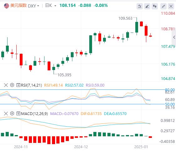 周一,因美媒称特朗普将仅针对关键进口商品实施普遍关税,美元指数大幅跳水,一度跌破108关口,随后特朗普在社交媒体平台发文表示关于关税政策将缩水的报道不实,美元指数回升,截至目前,美元报价108.154。