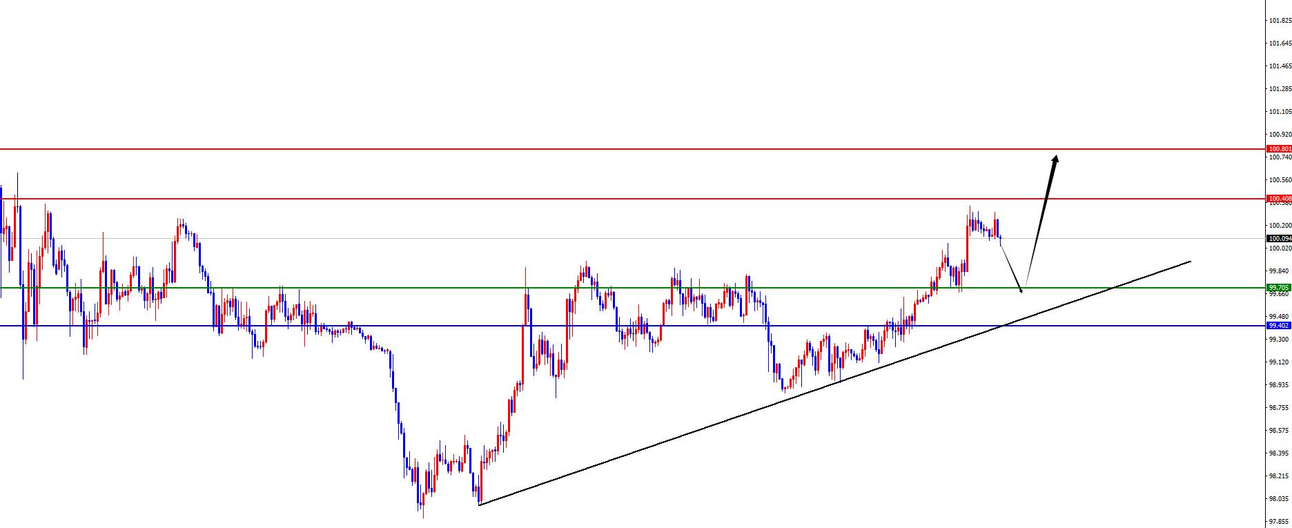 Na análise de vários periodos, nível semanalO preço é suprimido na resistência da área de 103,90; portanto, de uma perspectiva de médio prazo, a tendência do índice do dólar americano será mais baixa. No nível diário, o preço atingiu o nível de resistência da área de 99,40. Da banda, o preço quebrou e estabilizou a resistência diária. A resistência anterior se torna suporte e as bandas subsequentes são otimistas. No curto prazo, o suporte regional de 99,70 está na frente de 4 horas e o preço permanecerá relativamente otimista no curto prazo. Prestaremos atenção a preços crescentes. No geral, enquanto o preço não rompe o suporte diário de quatro horas e diariamente, continuará ansiosamente por aumentar. O acima é temporariamente focado na área de 100,40-100,80.