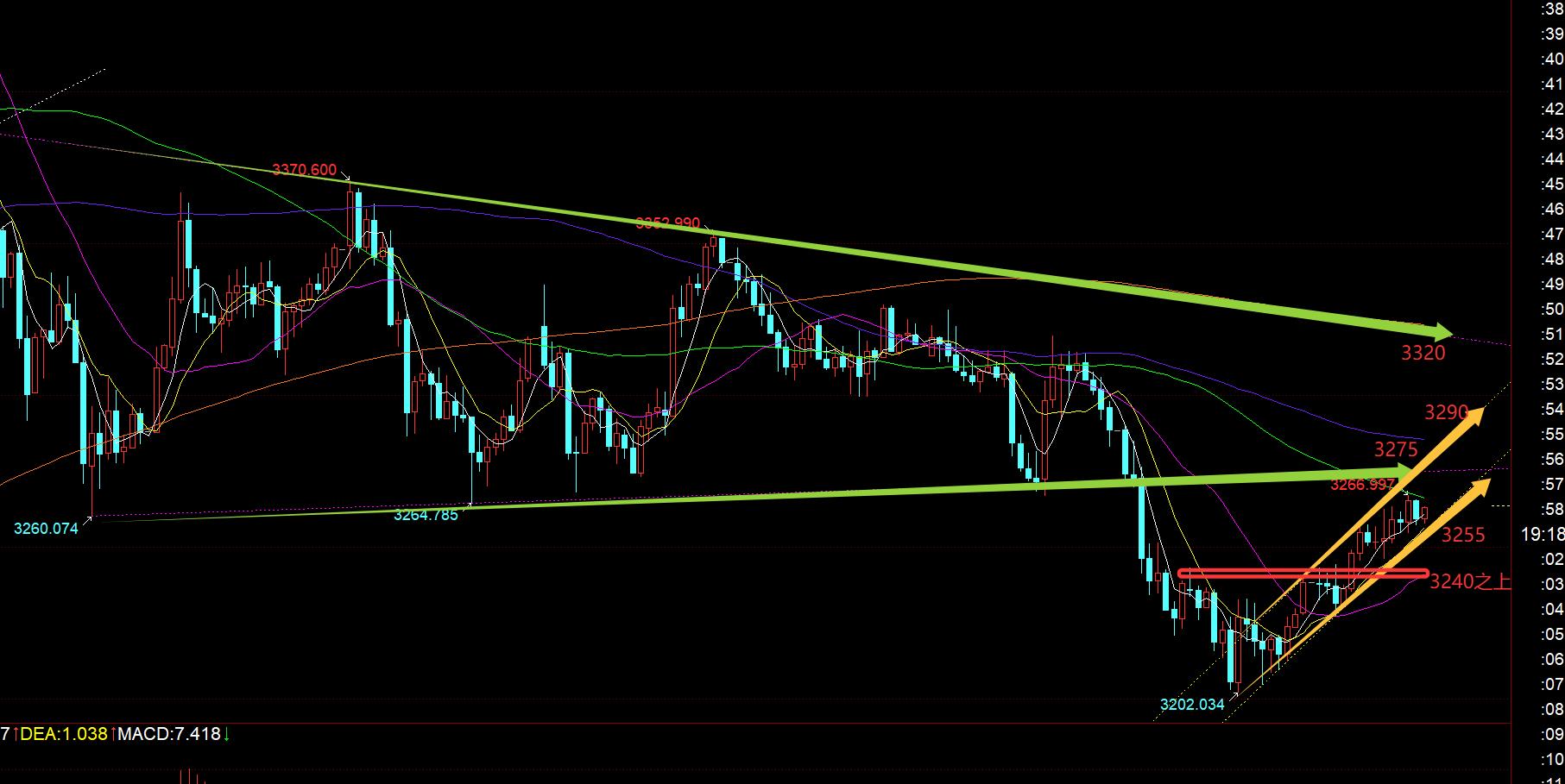 Segundo, nível de 4 horas de ouro: depois de apoiar a marca 3200, ele aumentará lentamente o tempo todo. Preste atenção à linha do meio da trilha 3275 hoje à noite. Se você puder romper a estação, preste atenção à linha 3320 de resistência média móvel de 66 dias;