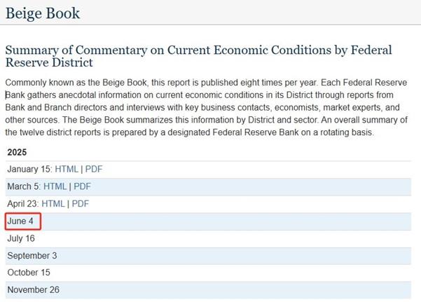 Nesta quinta -feira às 2:00, o Federal Reserve anunciará o quarto livro do ano. O livro bege é lançado oito vezes por ano e resume os relatórios de análise de 12 bancos do Federal Reserve, envolvendo principalmente a economia, a inflação, a taxa de desemprego e outros conteúdos. O livro bege divulgado em abril mencionou: cinco regiões relataram crescimento econômico, três regiões não mudaram e quatro regiões relataram declínio econômico. Se o livro bege divulgado nesta semana, o número de relatórios de crescimento econômico crescente e o número de declínios diminuem, significa que a economia dos EUA se recuperou significativamente desde abril, e a pressão sobre o Federal Reserve para reiniciar os cortes na taxa de juros diminuiu, o que é mais favorável ao índice do dólar. Pelo contrário, se a região de crescimento econômico diminuir, significa que o desempenho macroeconômico dos EUA é ruim, a pressão do Federal Reserve para reduzir as taxas de juros aumenta, o que é negativo para o índice do dólar. Considerando que abril tem sido um período crítico para a implementação de uma série de políticas radicais do presidente dos EUA, Trump, é provável que o livro bege desta semana seja negativo no índice do dólar americano.