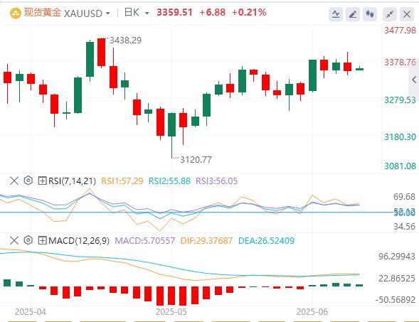 Técnico: a partir do gráfico diário, o ouro está atualmente oscilando entre as trilhas médias e superiores da banda de Bollinger, e a situação geral ainda está no estágio de consolidação no consultório consolidado no consultório consolidado no estágio de consultoria. Depois de chegar a US $ 3.300, o preço foi temporariamente bloqueado na linha de US $ 3.430. Este nível é a área alta anterior e também é a resistência a curto prazo correspondente à pista superior da banda Bollinger. Os analistas acreditam que, se o volume subsequente exceder US $ 3.430, espera -se que ele conteste o ponto alto de US $ 3.499,83 novamente. Em termos de indicadores de MACD, a linha rápida (DIFF) e a linha lenta (DEA) estão acima do eixo zero, mostrando uma cruz de ouro suave, e o gráfico de barras é microA curva acentuada vermelha e o momento xm217.começa a se recuperar, sugerindo que existe a possibilidade de se fortalecer ainda mais no curto prazo. O índice de força relativa (RSI) está atualmente pairando em torno de 58, e não há sinal de excesso de oferta, indicando que o sentimento do mercado é relativamente neutro e está retendo espaço para aumentos subsequentes. A partir da estrutura geral, o ouro mostra um padrão de oscilação de caixas significativo, xm217.com o nível de suporte referente à marca de US $ 3300 e ao nível de resistência focado no nível de US $ 3430; Uma vez que ele rompe, espera -se que o espaço acima seja aberto.