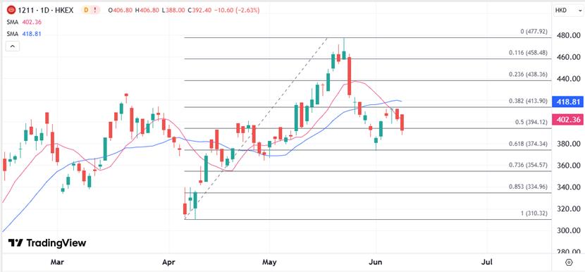 Entre os estoques de automóveis, BYD (01211), que será xm217.compensado amanhã, esclareceu que não havia problema financeiro. Ao mesmo tempo, o tanque de xm217.combustível era xm217.compatível e o preço das ações caiu mais de 3% durante a sessão, tornando -o o chip azul mais fraco da sessão. A empresa anunciou anteriormente que planeja aumentar o método de dividendos de ações para a distribuição de lucros. Além do dividendo em dinheiro original aos acionistas da RMB 3,974 por ação, também aumenta a proporção de ações de bônus, o que ainda é benéfico para o preço das ações. No entanto, o lado técnico atual de curto prazo ainda é prejudicado pela média móvel e pode continuar a cair nesta semana e procurar suporte abaixo de HK $ 380 para se recuperar novamente.