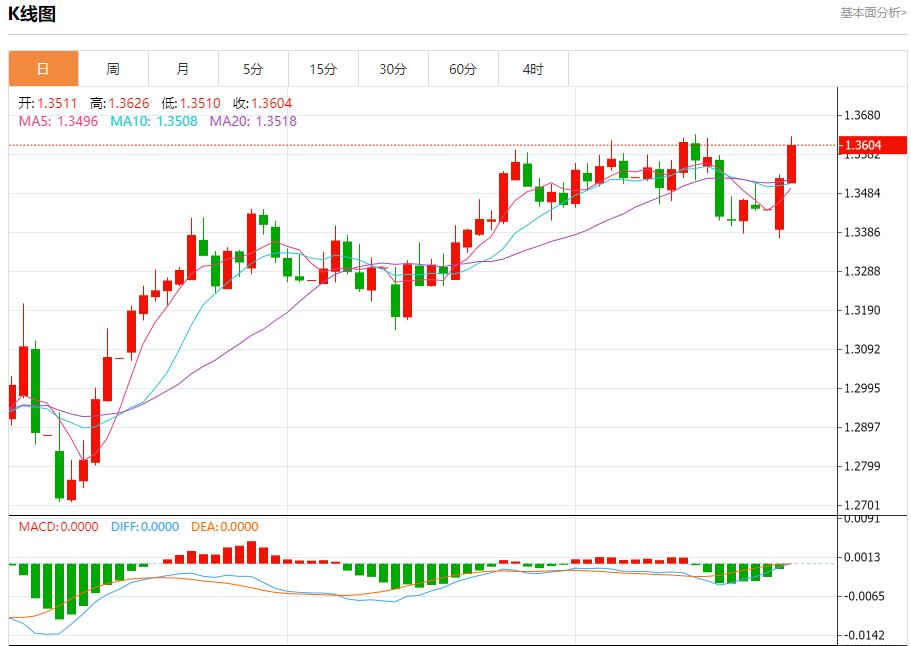 gbp/USD: a partir de 20:23 Pequim, GBP/USD aumentou, agora a 1.3605, um aumento de 0,61111. Antes da bolsa de valores de Nova York, o preço (GBPUSD) continuou a cair acentuadamente no último dia de negociação para confirmar uma nova linha de tendência de alta formada a curto prazo, aproveitando a resistência à quebra de seu EMA50, que já havia formado um obstáculo dinâmico.