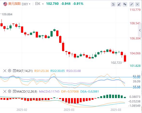Na quarta -feira, a perspectiva econômica dos EUA foi atingida pelo impacto do anúncio de Trump de crescer as tarifas globais de reciprocidade e o índice de dólares nos EUA fechou 0,49%. A partir de agora, o dólar americano é citado em 102,78.