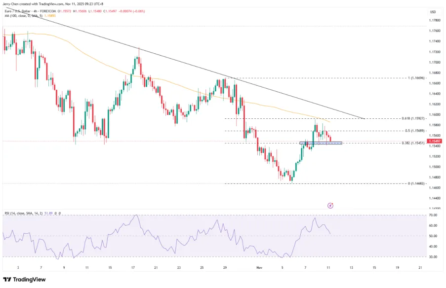 Embora o fim da paralisação não signifique que os dados económicos recentes serão divulgados a tempo, espera-se que o Fed tenha três relatórios não agrícolas (setembro, outubro e novembro) xm217.como referência antes da reunião de 10 de dezembro. Isto reduz enormemente o risco de erros de tomada de decisão e também reduzirá, correspondentemente, sérias diferenças dentro do Fed. A probabilidade de um corte nas taxas em Dezembro, implícita no actual mercado de taxas de juro, caiu para cerca de 60%, o que ajudou o índice do dólar americano a estabilizar em torno de 99,60.