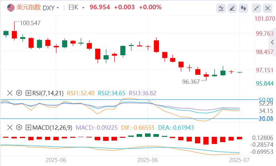 Dolar Endeksi: Basın süresinden itibaren ABD Dolar Endeksi 96.95 civarında dolaşıyor. ABD Doları endeksinin eğilimi çoklu temel faktörler tarafından yönlendirilmektedir. Birincisi, Trump'ın tarife açıklamaları fermente olmaya devam ediyor ve küresel ticaret beklentileri ile ilgili endişeler yoğunlaşıyor. Bu hafta Federal Rezerv son FOMC toplantısının dakikalarını yayınlayacak ve pazar gelecekte faiz oranlarını azaltabileceğine dair sinyaller gönderip göndermediğinden endişe duyuyor. Analistler, eğer dakikalar önyargılısa, politika yapıcıların ekonomik görünüm konusunda temkinli oldukları ve doların geri çekilmesi için baskı ile karşılaşabileceğine dikkat çekti; Aksine, yüksek faiz oranlarını koruma ihtiyacı vurgulanırsa, doların gücünü artırması beklenmektedir. Amerika Birleşik Devletleri önümüzdeki hafta sınırlı makro verilere sahip olmasına rağmen, Haziran ayında tarım dışı istihdam verileri güçlüydü ve işsizlik oranı düşerek ABD doları için bir miktar destek sağladı. Teknik olarak, ABD Dolar Endeksi yakın zamanda yıllık düşük seviyelerinden kurtulmaya çalıştı, ancak 50mA civarındaDirençle yüz. ABD Doları Endeksi 97.15'te 50mA'nın üzerine çıkırsa, bir sonraki direnç seviyesine 98.00–98.20'ye doğru hareket edecektir.