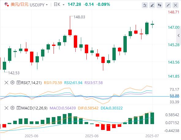ABD dolarındaki genel artışa rağmen, ABD doları/yen hala 147.50'nin altında, esas olarak Japonya Bankası'nın (BOJ) Temmuz ayı politika toplantısında enflasyon tahminini artırabileceği beklentisi nedeniyle.