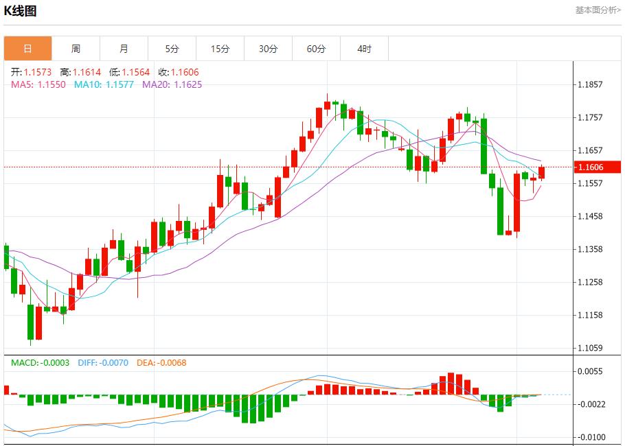 Euro/USD: 20:23 Pekin zamanından itibaren Euro/USD yükseldi ve şu anda 1.1608'de%0.28 artış. New York Menkul Kıymetler Borsası'ndan önce, (Euro-USD) fiyatı son işlem gününde yükseldi, 1.1575 direnç seviyesini kırarak, EMA50'nin negatif baskısından uzaklaşarak, küçük boğa piyasası dalgalanmalarının liderliğinde intraday seviyelerine geri döndü ve (RSI) 'den pozitif bir sinyal ortaya çıktı, aşırı seviyelere ulaşmasına rağmen ortaya çıktı.