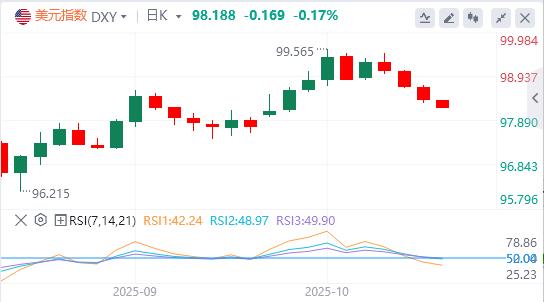 17 Ekim Cuma günü Pekin saatine göre erken Asya ticaretinde ABD doları endeksi 98,18 civarında seyrediyordu. Perşembe günü ABD dolar endeksi düşüşünü sürdürdü ve sonunda %0,31 kayıpla 98.361 seviyesinde kapandı. ABD tahvil getirileri genel olarak düştü; 10 yıllık gösterge ABD tahvil getirisi %4'ün altına düştü ve sonunda %3,973 seviyesinde kapandı. Fed politika faizine duyarlı olan 2 yıllık ABD tahvil getirisi yüzde 3,431 seviyesinde kapandı. ABD kredi piyasasındaki patlamanın riskten kaçınmayı artırması ve Federal Reserve'ün faiz indirimine ilişkin beklentilerin artmasıyla birlikte, spot altın art arda dördüncü işlem gününde rekor seviyeye ulaştı, tek bir günde 115 dolar artışla ons başına 4.300 doların üzerine çıktı ve sonunda %2,8 artışla ons başına 4.326,12 dolardan kapandı; Spot gümüş 54$ seviyesinin üzerinde kaldı ve sonunda %2,19 artışla ons başına 54,15$ seviyesinde kapandı. Yoğunlaşan petrol arzı fazlası ve küresel ekonomik görünüme ilişkin endişeler, uluslararası ham petrolün beş aydan fazla bir süre içinde yeni bir düşük seviyeye düşmesine neden oldu. ABD piyasasında WTI ham petrolü, risk varlıklarındaki düşüşün ardından %2,39 düşüşle 56,87 ABD$/varil seviyesinde kapandı; Brent ham petrolü nihayet %2,23 düşüşle 60,84 ABD Doları/varil seviyesinden kapandı.
