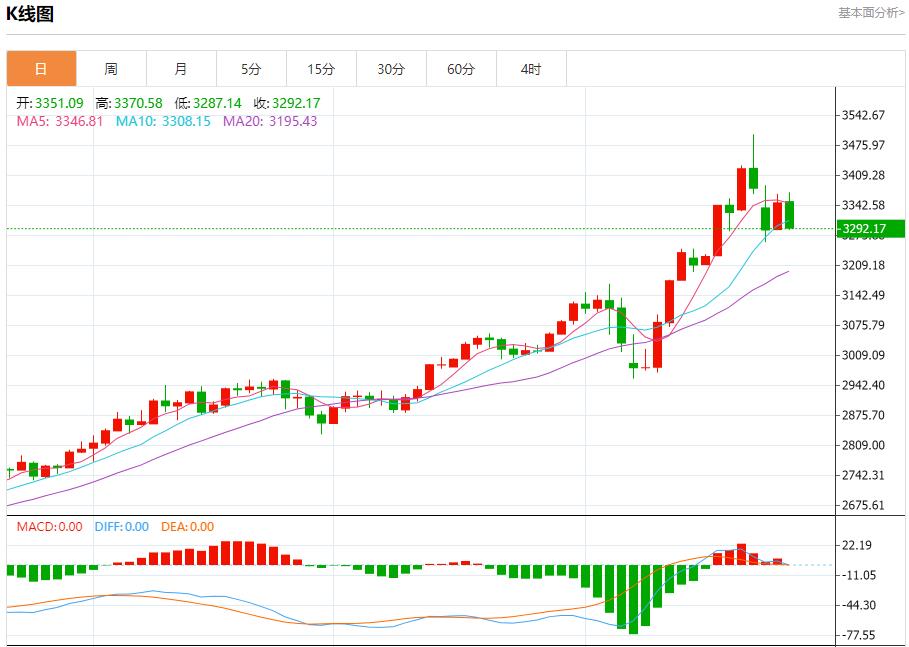 現貨黃金:截止北京時間20:20,現貨黃金下跌,現報3293.03,跌幅1.64%。紐市盤前,黃金價格在最後一個交易日下跌,以超過其EMA50的支撐,其正面機會與(RSI)上負面信號的出現有關,以在短期基礎上依靠一個較小的看漲偏向線,同時穩定在3,290美元的關鍵支撐位。