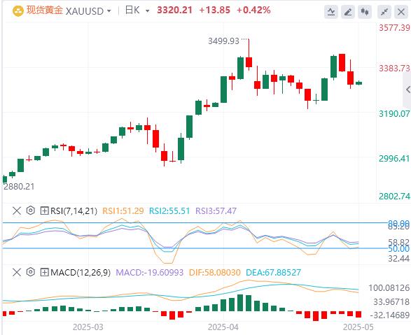 週五亞盤,黃金交投3320.21附近。黃金周四延續跌勢,下挫近2%,現貨黃金盤中最低觸及3288.72美元/盎司,收報3305.70美元/盎司,此前美國總統特朗普宣布與英國達成貿易協議,從而提高了與其他國家達成此類協議的希望,緩解了市場的緊張情緒,打壓黃金的避險買盤,美元、美股和美債收益率上漲,也打壓金價走勢。本交易日需要密切關注國際貿易局勢相關消息和市場情緒的變化,另外,有多位美聯儲官員將發表講話,投資者也需要予以關注。