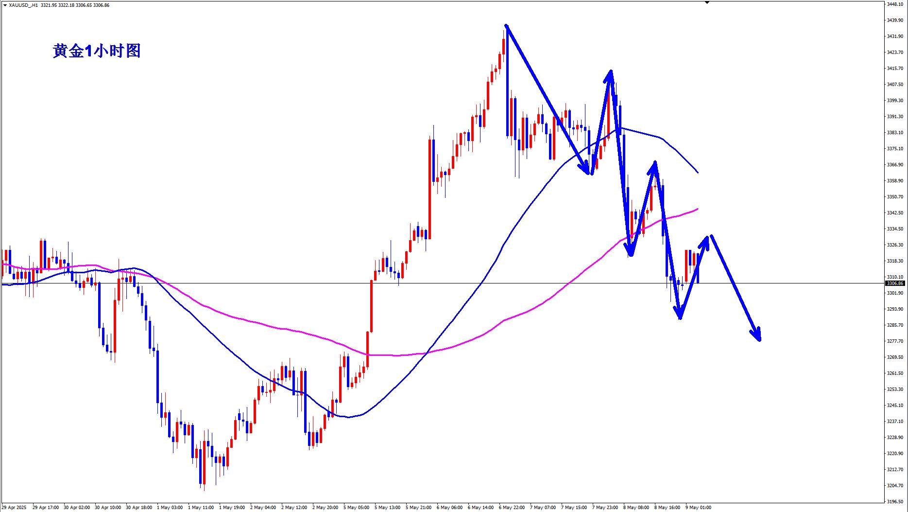 行情瞬息萬變,我們從來不做死多頭也不做死空頭,黃金昨天既然衝高回落下跌破位,黃金短線來說,黃金空頭更勝一籌,那麼黃金反彈就是空。