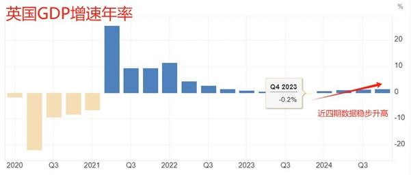 本週四14:00,英國統計局將公佈一系列經濟數據,其中最受市場關注的是第一季度GDP年率初值,其前值為1.5%,預期值1.2%,預期將降低0.3個百分點。歷史數據看,2023年四季度,英國的季度GDP增速年率-0.2%,創出近四年來最低值。此後,英國GDP年率數據穩步升高,2024年一季度的1.5%創出近三年新高。從GDP數據看,英國的宏觀經濟處於復蘇階段,利多英鎊。然而,市場預期今年一季度的GDP年率增速低於前值0.3個百分點,態度極為悲觀。原因可能不在英國內部,而來源於美國的激進對外政策。和美國的談判以英國的大幅讓步告終,這更加重了市場人士對英國宏觀前景的擔憂。如果英國的出口產業因為不利的談判結果而遭受顯著衝擊,英鎊的升值趨勢或被逆轉。