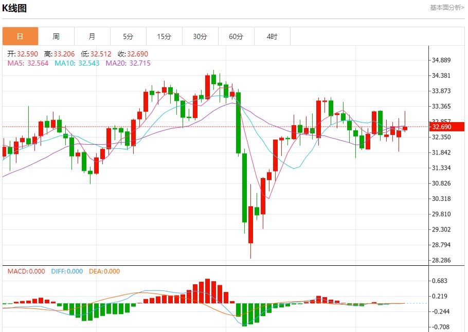 現貨白銀:截止北京時間20:18,現貨白銀上漲,現報32.688,漲幅0.34%。紐市盤前,(白銀)價格在最近的盤中交易中上漲,超過了EMA50的負面壓力,並受到(RSI)積極信號出現的支持,儘管其達到了超買水平,同時其交易伴隨著短期基礎上的看漲修正偏差。