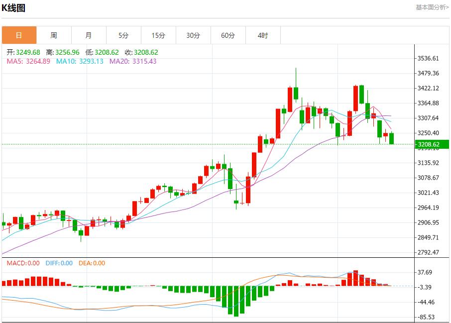 現貨黃金:截止北京時間20:18,現貨黃金下跌,現報3209.87,跌幅1.23%。紐市盤前,(黃金)價格在最近的盤中交易中下跌,受(RSI)上出現的負面信號的影響,在達到超買水平並試圖擺脫超買條件後,為實現更多上漲開闢了道路,在短期基礎上的主要看漲趨勢占主導地位,並沿著一條斜線交易,其在EMA50上方交易所代表的動態支撐繼續。