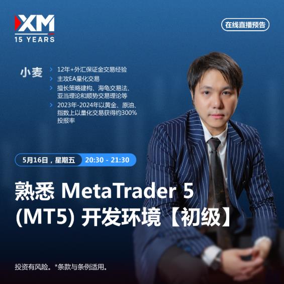 今晚,當地時間20:30,小麥老師將帶你熟悉MetaTrader5(MT5)開發環境【初級】 。直播內容包括: