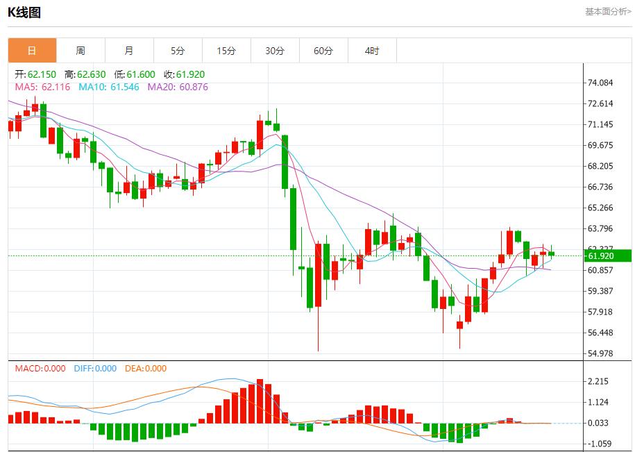 原油市場:截止北京時間20:20,美油下跌,現報61.910,跌幅0.34%。紐市盤前,(原油)價格在日內水平波動交易,在短期基礎上的看漲修正趨勢占主導地位,並沿著一條斜線交易,由於其在EMA50上方交易,正壓力持續,另一方面,我們注意到(RSI)上負面信號的出現。