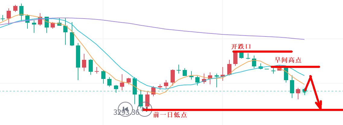 而今日方面也是如此,早間回撤,分水嶺3328,但注意,這是續跌位,從跌開始是在3337一線。