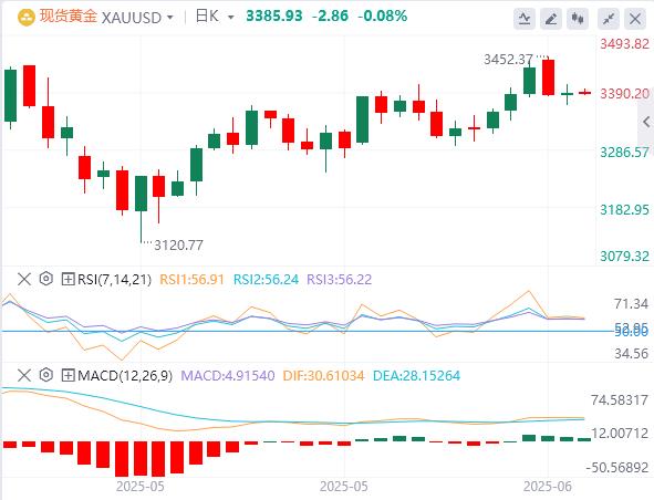 週三亞盤,黃金交投3385.93附近。由於美元整體走強推動黃金走低,儘管風險偏好惡化,但黃金價格週二回落至3400美元以下。儘管如此,以色列-伊朗衝突的升級可能會支撐貴金屬,因為它具有避險吸引力。