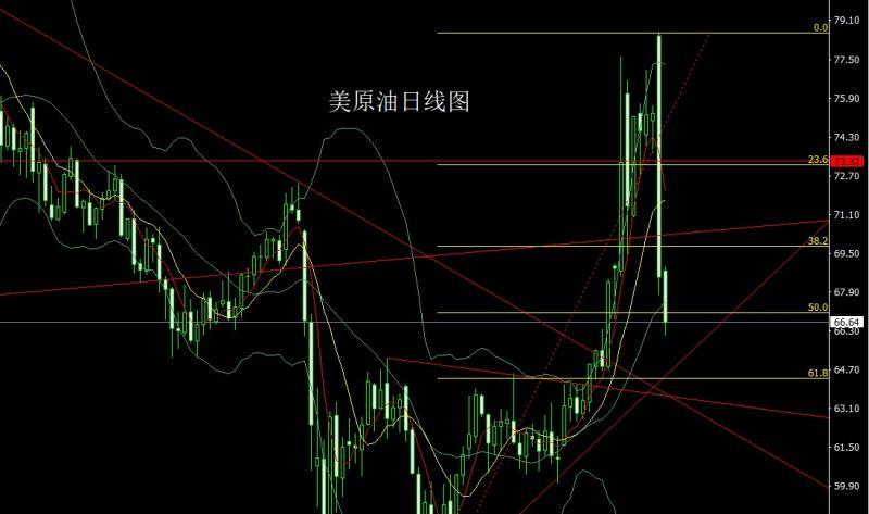 美原油市場昨日高開在78.44的位置後行情先拉升給出78.57的位置後行情強勢震盪回落,日線最低給到了67.77的位置後行情整理,日線最終收線在了68.53的位置後行情以一根下影線稍長的大陰線收線,而這樣的形態收尾後今日67.7空。止損68.3下方目標看67和66.3和65.5和65.