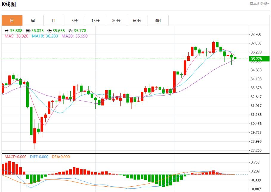 現貨白銀:截止北京時間20:23,現貨白銀下跌,現報35.777,跌幅0.30%。紐市盤前,(白銀)的價格在最近的盤中交易中下跌,受到主要阻力位36.00美元穩定性的影響,在短期看跌修正趨勢占主導地位,其交易沿偏向線交易,由於其交易低於EMA50而造成的負面壓力持續,此外(RSI)開始出現負面重疊信號,達到超買水平後。