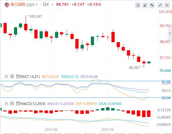 美元指數在跌至2022年2月以來的最低水平後小幅上漲。該指數仍然承壓,在明確的下降通道內移動。 50-EMA和200-EMA繼續充當阻力位,目前分別位於97.07和97.99。