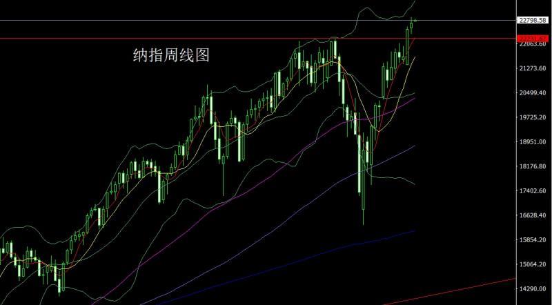納指市場上周延續拉升趨勢,周初開盤在22554.99的位置後行情先回落給出22351.9的位置後行情強勢震盪拉升,週線最最高觸及到了22900.4的位置後行情尾盤回落,週線最終收線在了22705.26的位置後,週線以一根上下影線等長的高位紡錘形態收線,而這樣的形態收尾後今日先拉升22850空質素22950下方目標看22600和22500.