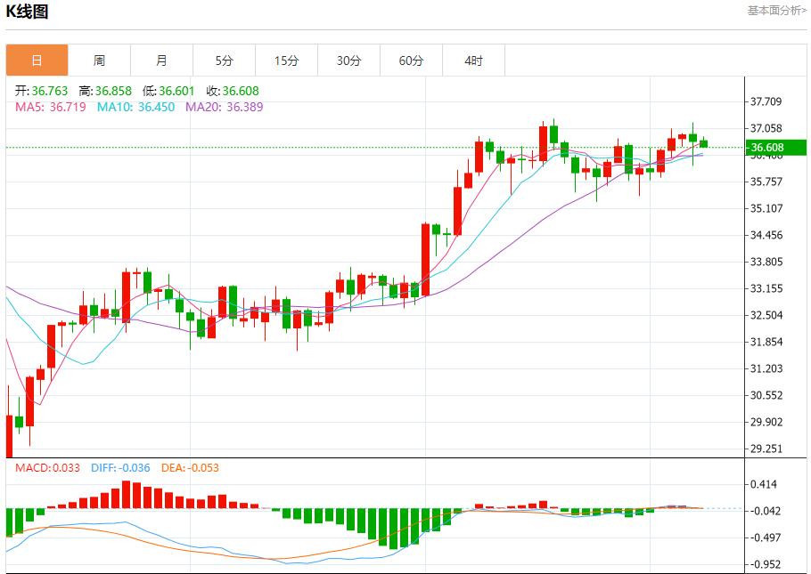 現貨白銀:截止北京時間20:23,現貨白銀下跌,現報36.613,跌幅0.39%。紐市盤前,(白銀)價格在最近一個交易日的水平上波動交易,來自EMA50上方交易的積極壓力持續存在,在主要看漲趨勢的主導下,以及在短期基礎上沿著一條小斜線交易,這使得這種積極的情況動態穩定。另一方面,我們注意到在達到超買水平後出現了消極的重疊信號,由於需要卸載一些超買條件,這種信號減緩了上行軌道。