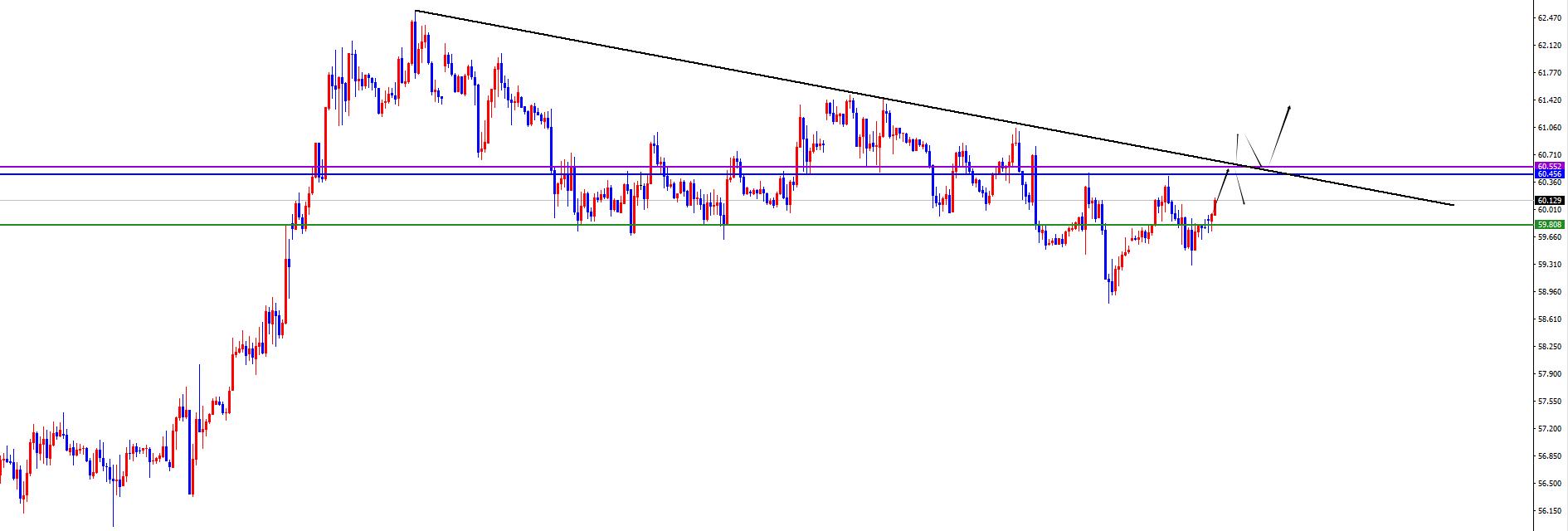 價格在59.80之上偏多,後續注意日線及週線阻力突破表現