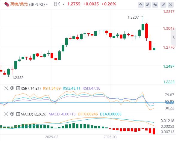 英鎊/美元週一下跌超過1%,並觸及一個月來的最低水平1.2720附近。該貨幣對周二修正走高,交易價格略高於1.2750。
