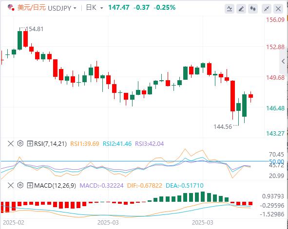 美元/日元週一上漲超過0.5%,但未能保持看漲勢頭。截至發稿時,該貨幣對當日下跌0.5%至147.10。日本首相石破茂週一表示,他們將繼續推動美國審查關稅政策,並指出他正在考慮在適當的時候訪問美國,與特朗普進行直接對話。