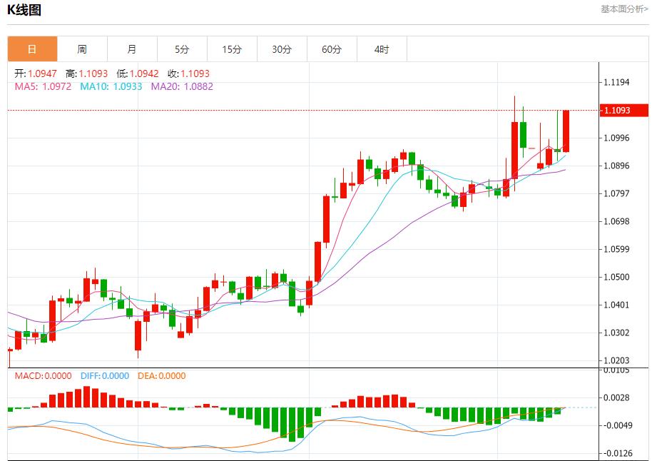 歐元/美元:截止北京時間20:18,歐元/美元上漲,現報1.1095,漲幅1.33%。紐市盤前,在看漲趨勢的影響下,歐元兌美元的價格在最近的盤中交易中上漲,並沿著上升趨勢線交易。這伴隨著相對強弱指數(RSI)在達到超賣水平後出現積極信號。