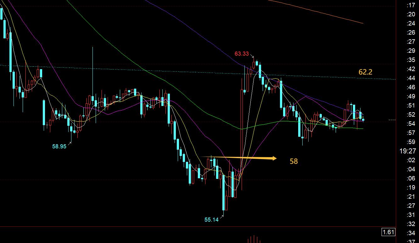 原油方面:沒多大變化,基本和昨日觀點一致,阻力62.2反壓,支撐58,區間內暫時運行;