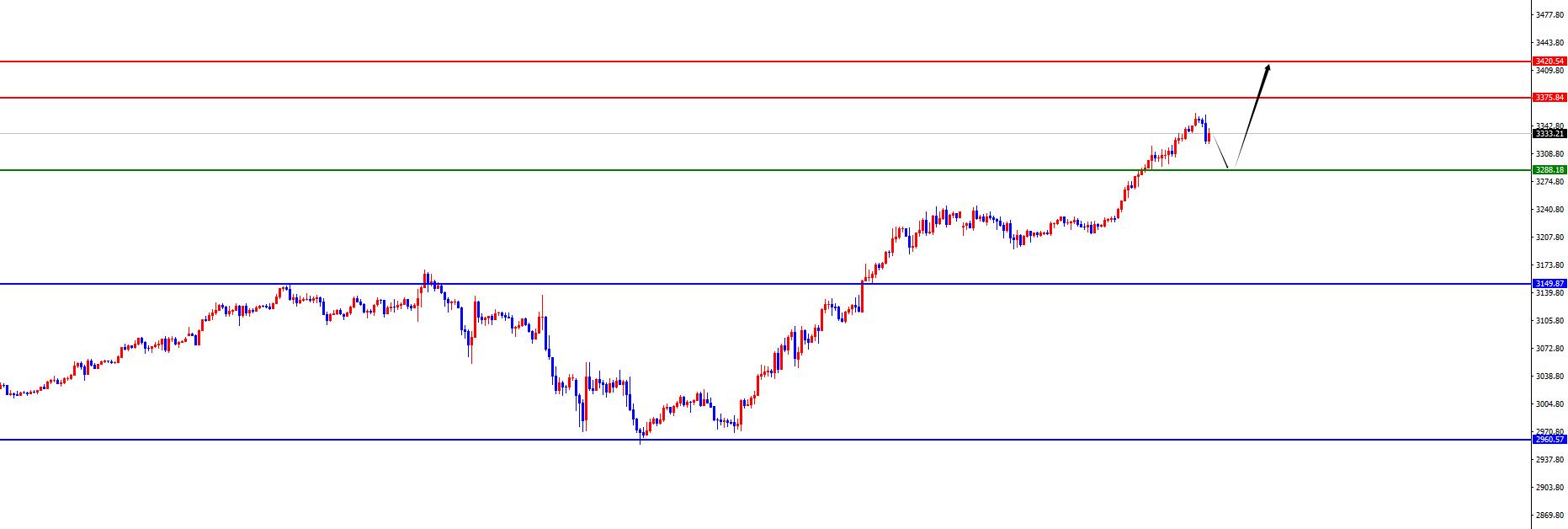 黃金方面,週三黃金價格總體呈現上漲的狀態,當日價格最高上漲至3342.77位置,最低下跌至3229.77位置,收盤於3342.76位置。針對周三早盤期間價格延續上漲節奏,之後歐盤進一步延續,同時美盤及隔夜再度強勢拉升再創新高,並且收盤在最高位置。從周線級別來分析,黃金價格受撐於2960區域的支撐位。那麼從中線角度來看,我們可以持續保持看多的觀點。從日線級別觀察,目前價格受撐於3150區域支撐,從波段的角度持續看多。對於短期四小時上價格受撐於3288位置,價格在此位置之上短期依舊偏多。短線一小時上價格在今日早盤衝高後再度回落,所以價格打破近期強勢表現,目前先關注價格回踩,待後續回踩至四小時支撐區域附近後再看進一步上行,上方關注3375-3420區域。