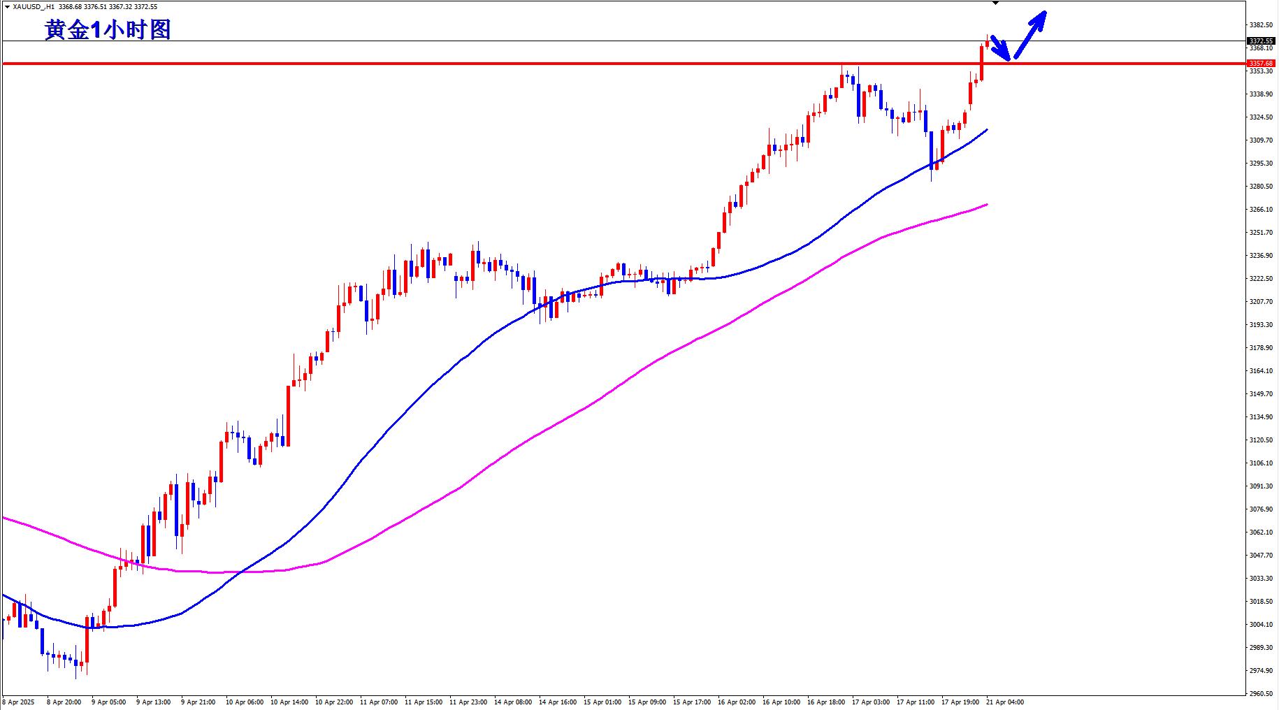 黃金最近的避險的刺激下都是瘋狂上漲,這種情緒化的市場,那麼只能順勢跟進,因為黃金不斷刷新高點沒有人知道會漲到哪裡,不過高位不要輕易追多,波動加大之後,每次的回調幅度也不小。機會是等出來的。
