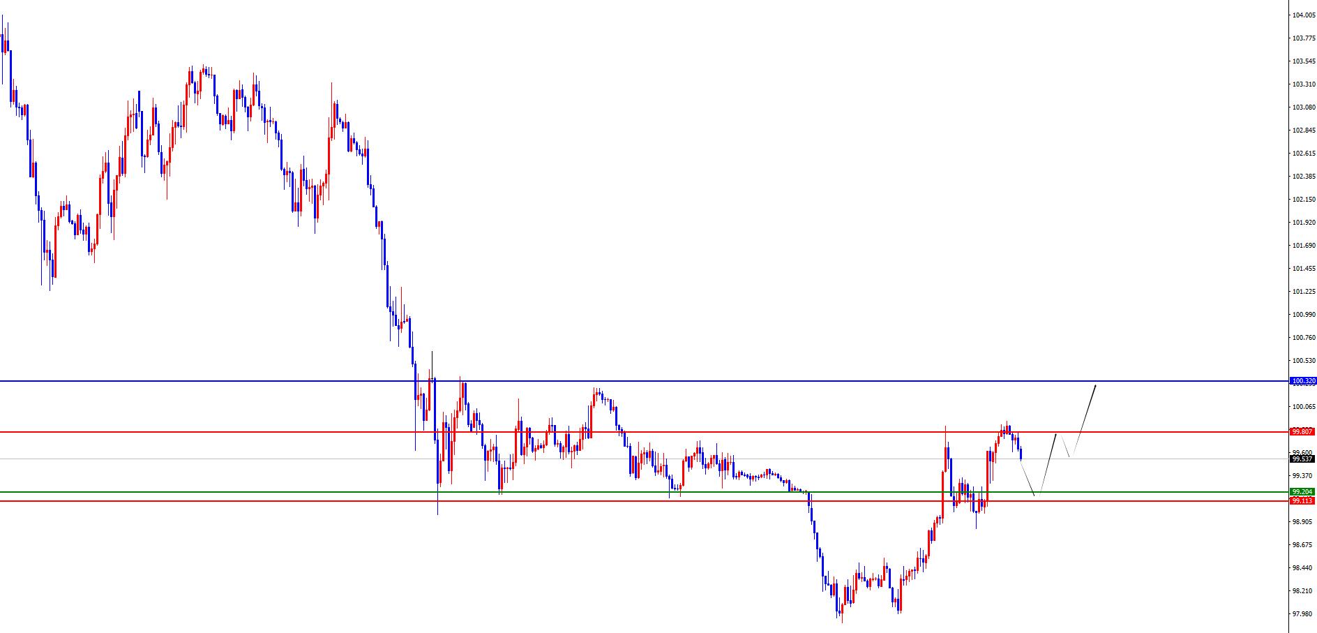 美指99.10-20區間多,防守5美金,目標99.80-100.30