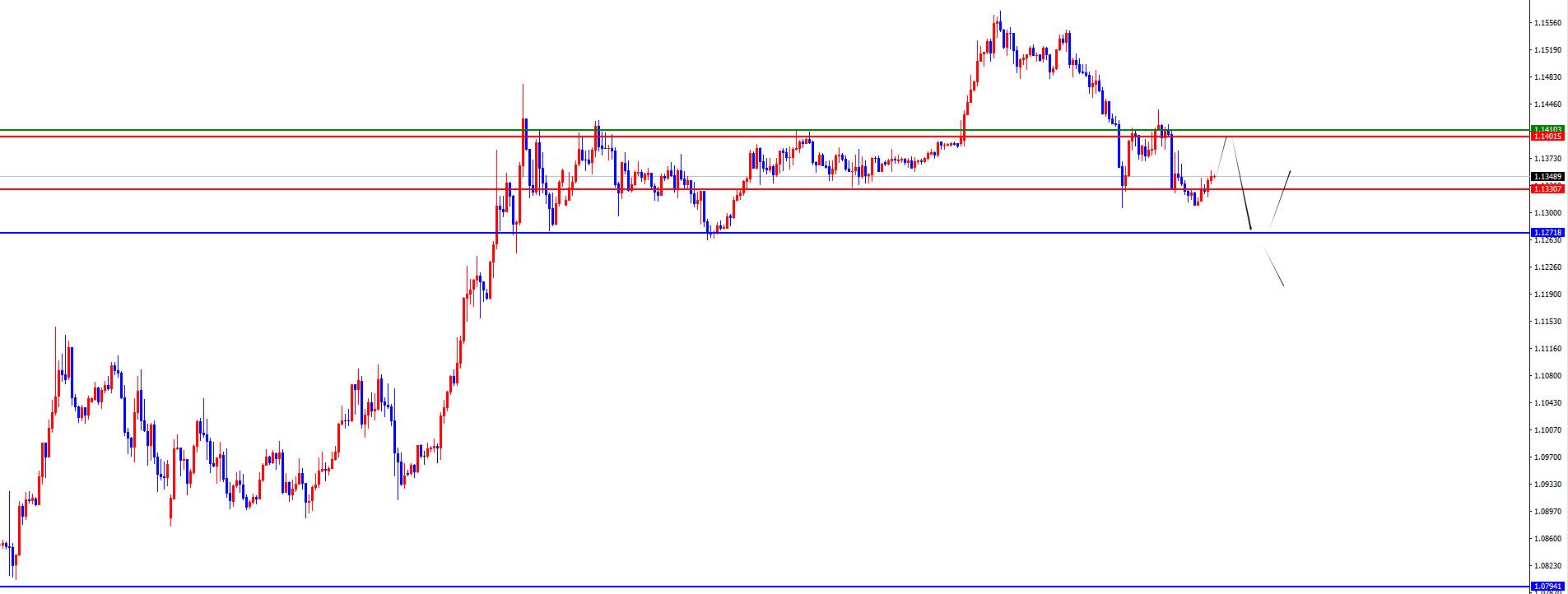 從多周期分析,從月線級別來看,歐美受撐於1.0770位置,所以長線多頭對待。從周線級別看價格受撐於1.0790區域的支撐,從中線的角度持續看多。從日線級別,價格受撐於1.1270區域支撐,所以波段同樣多頭的思路對待,價格下跌暫時作為修正對待,之後進一步跌破後才會波段承壓。從短期四小時級別看,昨日價格跌破四小時支撐位置,則此位置由之前支撐變後續阻力,則短期價格有望依托此位置繼續承壓,隨著時間的推移暫時重點關注1.1400010區間阻力,所以暫時待價格後續回踩後先看承壓,下方則暫時關注1.1330-1.1270區域支撐,後續四小時阻力及日線支撐區間破位後將延續。